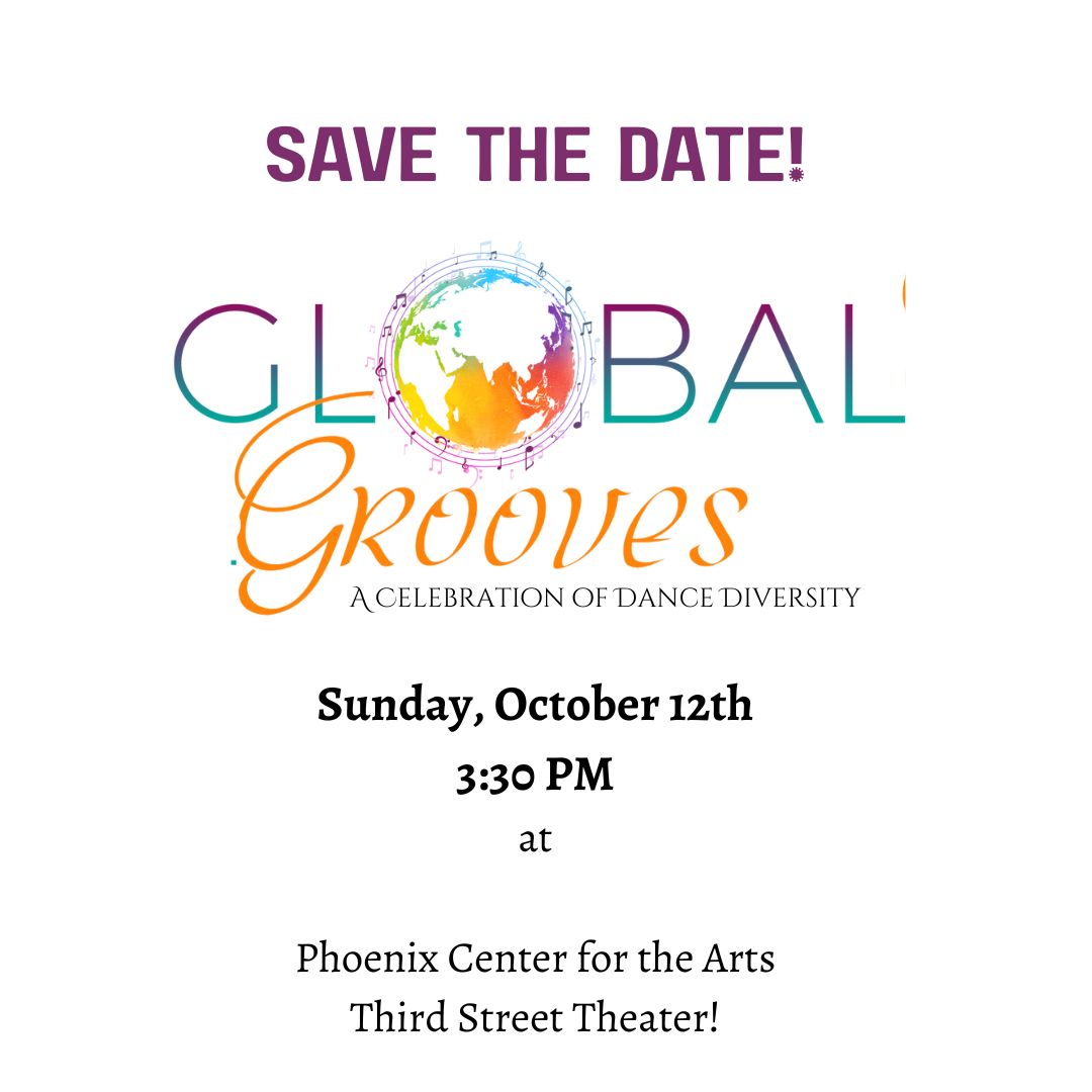 Global Grooves is back for our 3rd and BIGGEST year yet! Join us Sunday, October 12th at the newly renovated Phoenix Center For The Arts Theater on a trip around the world through dance and music! This year's artists include: Sharqia Dance Theater Tradiciones Mexican Folkloric Dance Sharzad Mazoury Persian ...