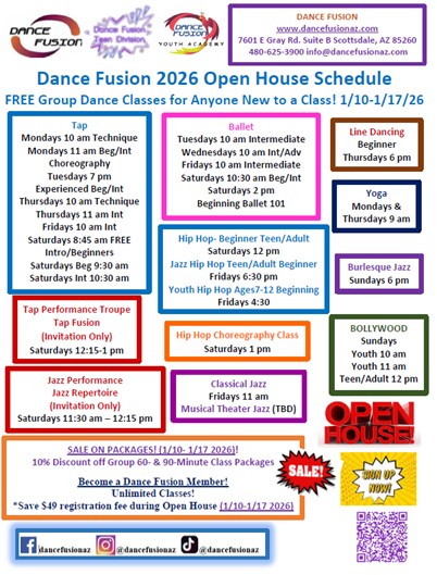 Register online at www.dancefusionaz.com or call 480-625-3900 or email moc.zanoisufecnadnull@ofni